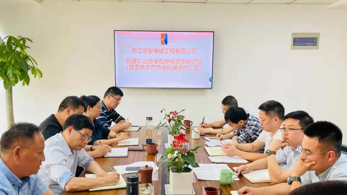 調研組一行聽取了工作匯報,了解了當前工作中存在的主要困難,并就業務承接合規性、提高經營毛利率以及總承包甲級資質申報等問題做了深入的交流和探討。馬福民總經理提出,京安公司要充分發揮調整后組織結構的作用,對公司當前在建項目的業務模式進行分類,對項目營收、利潤及稅收數據進行梳理;準確掌握與資質申報及業務合規化要求的差距,在接下來的工作中還要充分考慮混裝炸藥產能空間,結合公司“十四五”規劃爭取在三年內將差距補足。