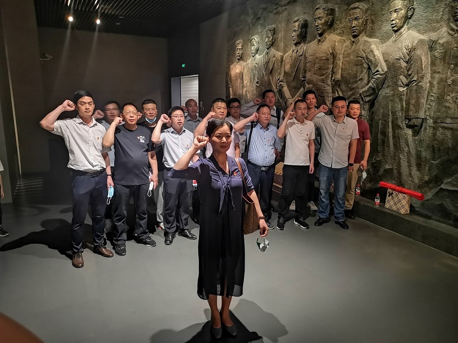在參觀的最后,全體黨員在黨旗前,重溫了入黨誓詞,深切緬懷革命先烈,更加堅定了為黨的中國特色社會主義事業奮斗終生的理想信念。