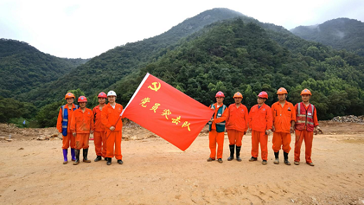 6月22日,京安公司在福清紅山礦項目部舉行學黨史 悟初心 擔使命“黨旗飄在項目上”活動授旗儀式。新聯公司黨委委員、副總經理陳偉蒞臨參加,并向項目部授黨旗。京安公司黨總支副書記、總經理崔曉明,黨總支委員、副總經理陶彬杰等領導一同參加了授旗儀式。