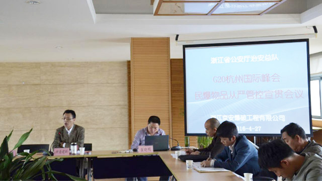 會議傳達了浙江省公安廳治安總隊“民用爆炸物品從嚴管控”會議精神,認真學習了 《G20杭州國際峰會安保民用爆炸物品從嚴管控工作方案》以及公安部《從嚴管控民用爆炸物品十條規定》,并結合公司實際進行了逐條解析,查擺日常管理中存在的不足,深入落實整改措施。