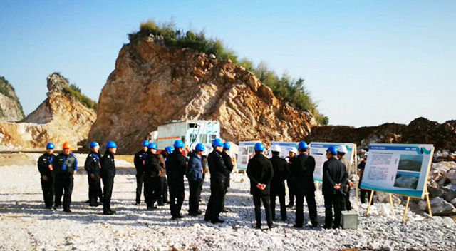 2017年12月18日下午,公安部三局馬維亞副局長、張國亮副處長在浙江省公安廳副廳長金伯中、治安總隊總隊長阮文廣、副總隊長程華、調研員周衛華、杭州市公安局特警支隊支隊長周鄭、治安支隊支隊長張文根、副支隊長王瑞理以及西湖區公安分局、雙浦派出所等有關部門同志陪同下,在浙江京安爆破工程有限公司石龍山南側廢棄礦山治理工程項目部現場觀摩了混裝炸藥裝填、爆破一體化過程作業,并在項目部召開了混裝炸藥應用座談會。